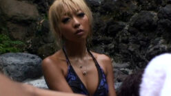 混浴露天風呂に入っている美形ギャルカップルの彼氏の死角に座り勃起チ○ポを見せつける!!いきり立つ股間に気づいたギャルは彼氏との会話中もチ○ポから目が離せない。