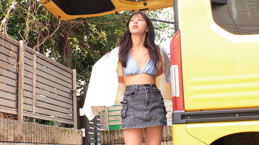 車の陰に隠れても見えてしまうおっぱい
